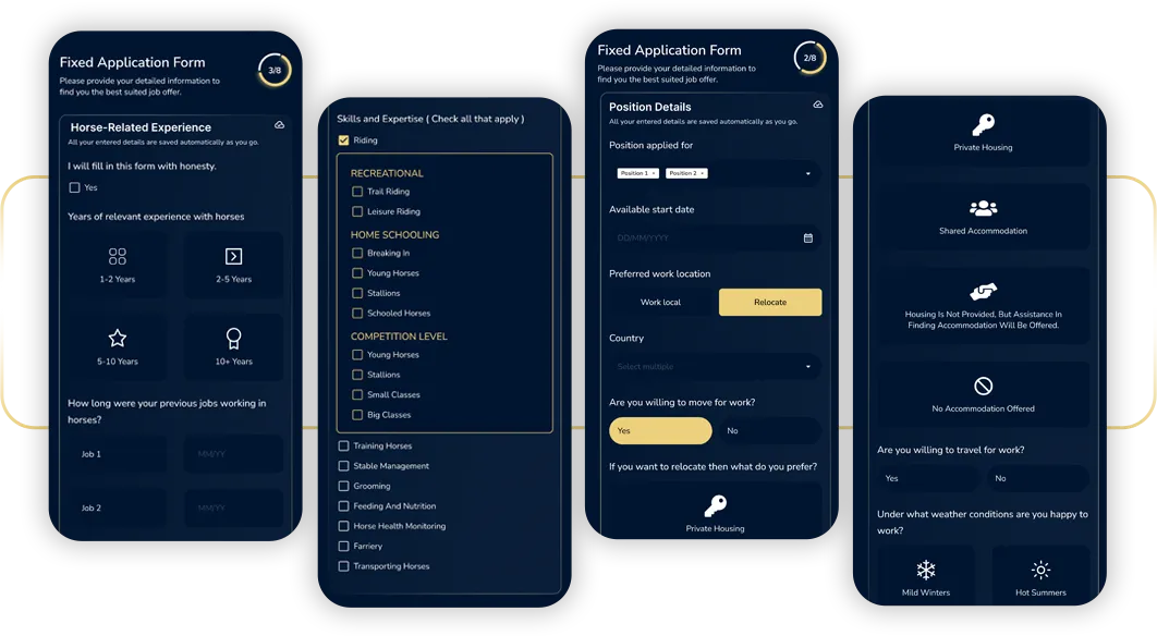 Comprehensive job application form tailored for the equestrian industry.